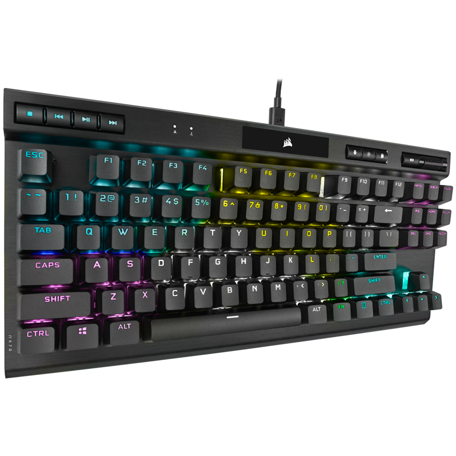Corsair K70 RGB TKL CHAMPION SERIES Tenkeyless Mechanical Gaming Keyboard, Backlit RGB LED, CHERRY MX Red, Black, Black PBT Keycaps