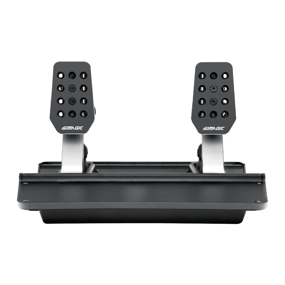 The Simagic P500 is an entry-level pedal set made from durable die-cast aluminum with precision CNC machining. It features a 100kg load cell, Hall angle sensor, adjustable resistance, and ergonomic design. With secure mounting options and SimPro Manager software, it offers solid control and customization for sim racing beginners.